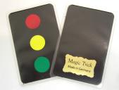 AMPELKÄRTCHEN Tom Voss (Future Magic) Halten Sie eine der beiden Karten in Ihrer linken Hand und zeigen Sie diese Ihren Zuschauern. Eine der Punkte wird von der Karte verschwinden und auf der anderen Karte wieder erscheinen! |