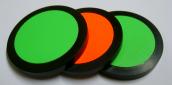 ??? CHIPFÄRBUNG ??? Sie erhalten 2 Normalchips in grün und orange und 2 Trickchips, die beiderseits in grün und orange vorgezeigt werden können (klappen) ! Aus Kunststoff Durchmesser ca. 3,5 cm. ROUTINE UNBEKANNT ! |