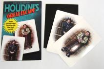 WANTED 4 Bilder eines berühmten Terroristen werden gezeigt, aber er schafft es, sich immer wieder sich zu verstecken. Er verschwindet viel zu schnell und Sie werden ihn nun langsam "verfolgen". Wenn Sie dann die Karten wieder auffächern und umdrehen, so sieht man nun 4 "leere Gefängniszellen"! Doch wo ist der gesuchte Mann? Sie können nun eine Zusatzkarte an beliebiger Stelle zum Vorschein bringen oder das beiliegende Feuerzeug verwenden (dieses zu Beginn beidseitig leer vorzeigen, in eine z.B. Schachtel einstweilen legen, und dann ist das Bild darauf erschienen)! |